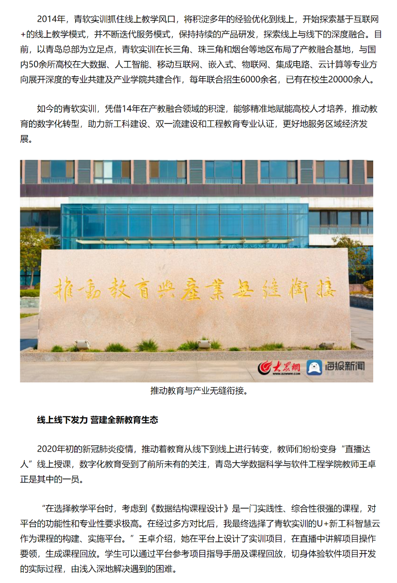 中教全媒体:青软集团如何赋能高校人才培养,实现人才培养与岗位需求的精准对接?